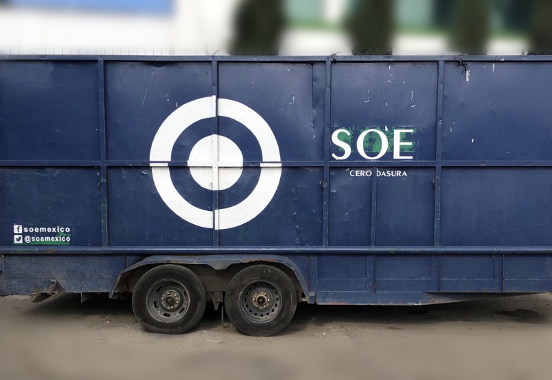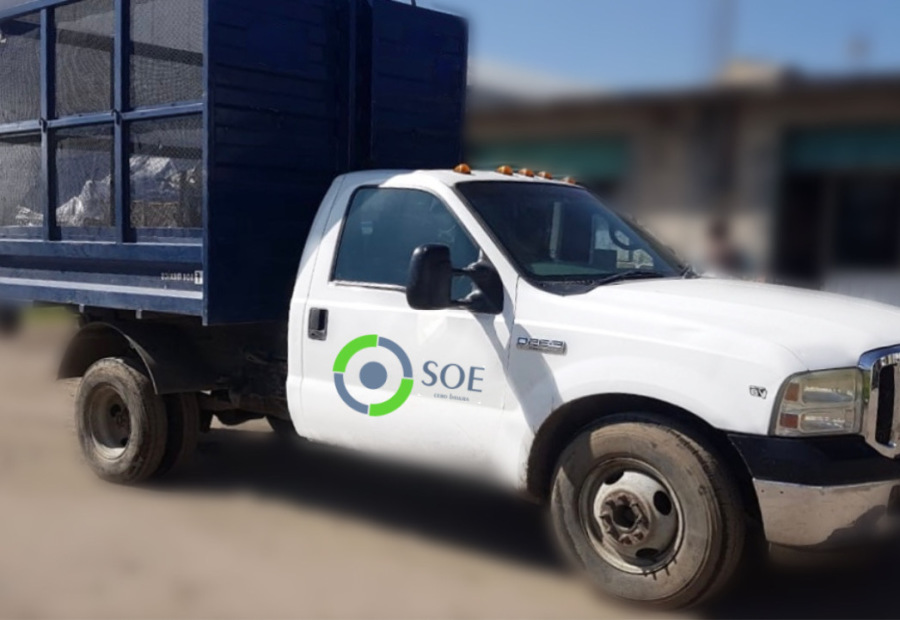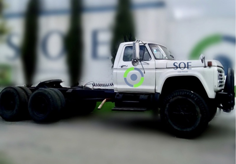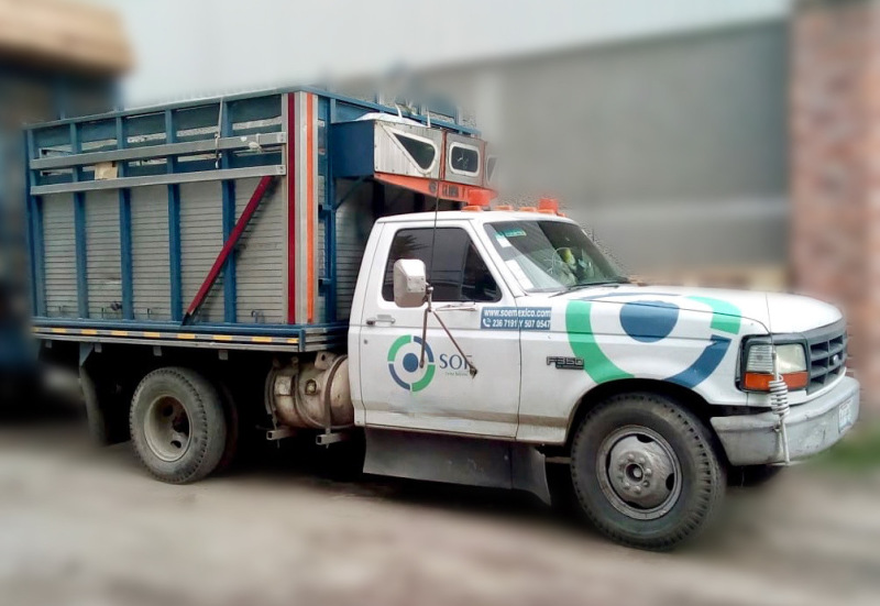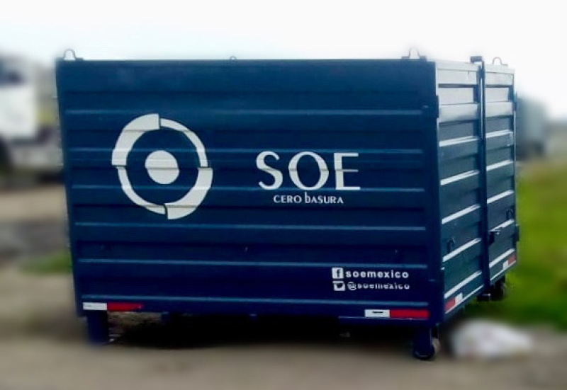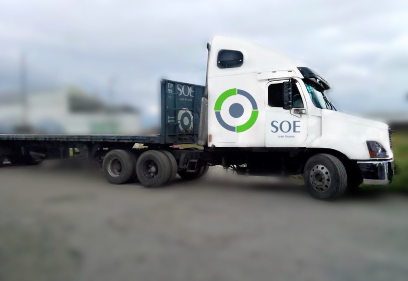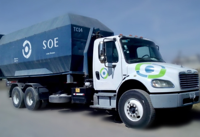 Camión Roll-Ón con sistema y brazo hidráulico.